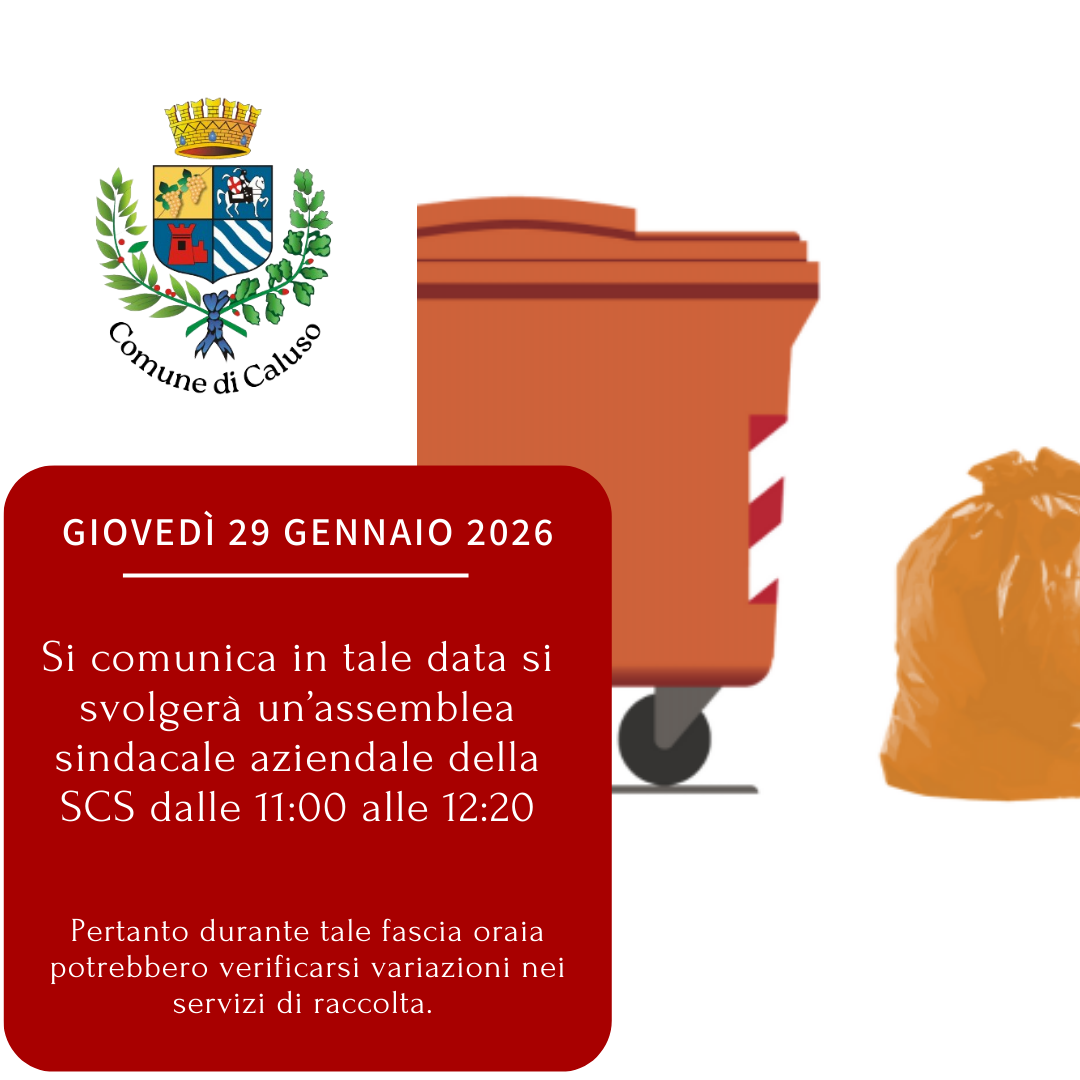 Si comunica che giovedì 29 gennaio si svolgerà un’assemblea sindacale aziendale della SCS dalle 11:00 alle 12:20.