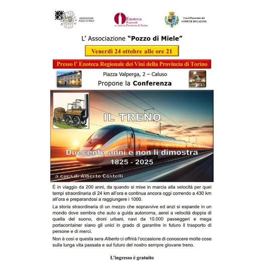 l’Associazione “Pozzo di Miele” propone la conferenza: “Il treno – Duecento anni e non li dimostra (1825-2025)” a cura di Alberto Costelli.