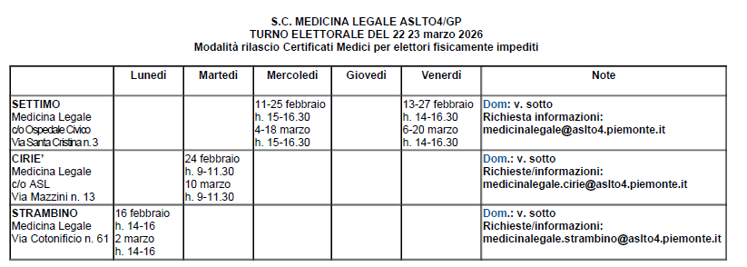 contattando la S.C. Medicina Legale dellโASL TO4 ai giorni e orari seguentiย