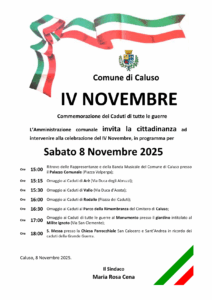Ore 9:00 Omaggio ai Caduti presso la lapide sita in Via Moretto a Caluso